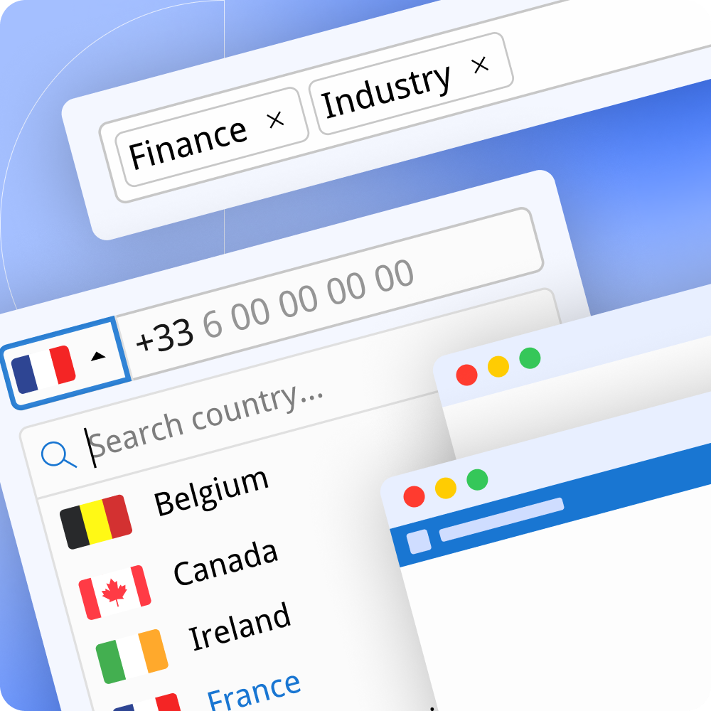 - Phone number field: Dedicated field for correct phone number formatting and editing.
