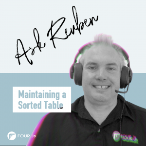 One of the dilemmas within Genero is to determine who controls the sorting when you allow a user to sort tables by clicking on the column header? If the program then modifies data in the array, or the user modifies a row in the array, should the sort be re-applied to respect what the arrow(s) in the column header are indicating? The decision made many years ago was to have the rule that can be found here https://4js.com/online_documentation/fjs-fgl-manual-html/#fgl-topics/c_fgl_prog_dialogs_list_sort.html When the program array is modified interactively, or by program with The motivation for the rule was that if a user or program modified a row, we did not want the modified row suddenly moving out of view. Better to have the freshly modified row still visible, even if out of position according to the indicated sort. The user can always reapply the sort by clicking on the column header(s) again to get the row into the sorted position. This approach works fine except in the case where you have an action in a DISPLAY ARRAY that refreshes the entire array. If the number of rows changes with this action, the visual array will be sorted as per the users sort. If the number of rows does not change, then the array will not be resorted as per the users sort. The expectation of the person asking this question is that the array should be visually sorted. There is a little trick you can do for this scenario. If you add a ui.dialog.deleteAllRows call then this will trick the runtime into reapplying the users sort. This can be illustrated with the attached program. With the program : if you examine the code you can hopefully see that once you click the “Add deleteAllRows call ” then each time you click “Smaller”, “Greater”, “Same”, a ui.Dialog.deleteAllRows call is executed before the arr.clear() call.