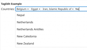 STYLE="tagedit"COMPLETER attributeON CHANGE countries block, there are three key points.