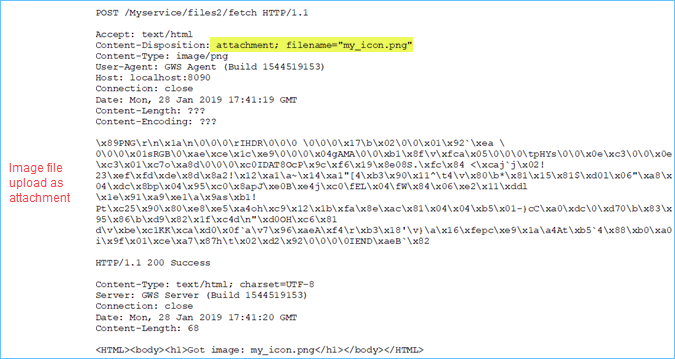 In Figure 1 the image is sent as an attachment in the message body.