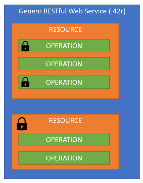 The Genero Identity Provider can secure RESTful Web services. To understand how to secure a Web service, you must understand the architecture of a Web service, as it relates to permissioning.