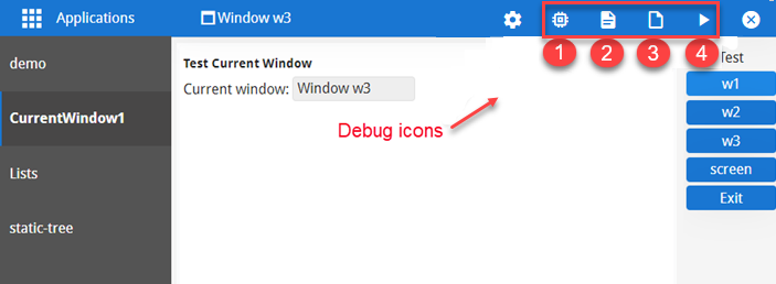 When started in debug mode, the GBC interface displays debug icons along with the standard icons in the chromebar.