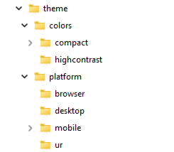 The theme parts are defined in the gbc-project-dir/theme directory; see Figure 1. The color subdirectory contains the theme parts that define high contrast and compact themes. The platform subdirectory contains the platform-specific theme parts.