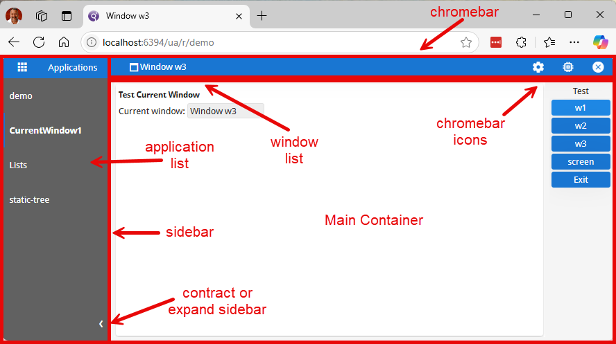 For applications using GDC-UR, the chromebar does not contain the settings and debug icons, as