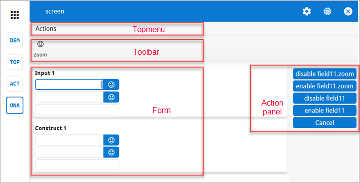 forms, and action panels.