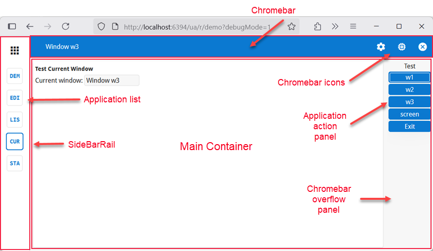 In debug mode, the chromebar also displays the [Debug] AUI