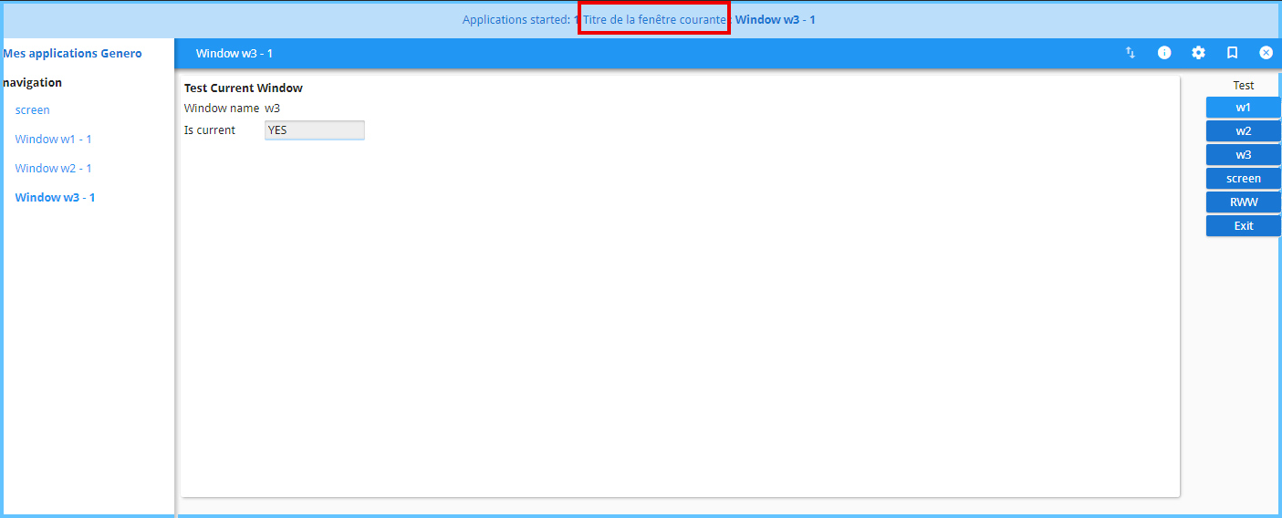In the application header bar, the text "Titre de la fenêtre courante" is displayed.
