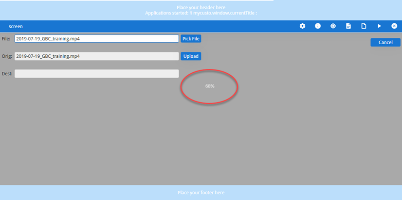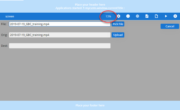 When you upload a file into your application, the chromebar briefly displays an animated icon and then displays a percentage, as shown in Figure 1.