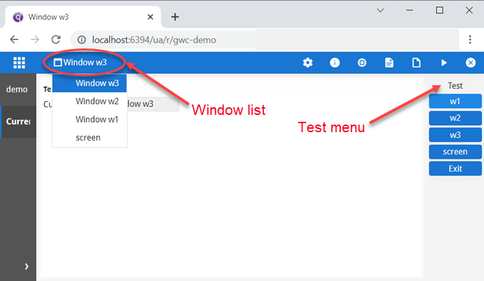 Complete this demonstration to see how the Genero Browser Client (GBC) allows you to switch between windows in an application that has stacked windows.