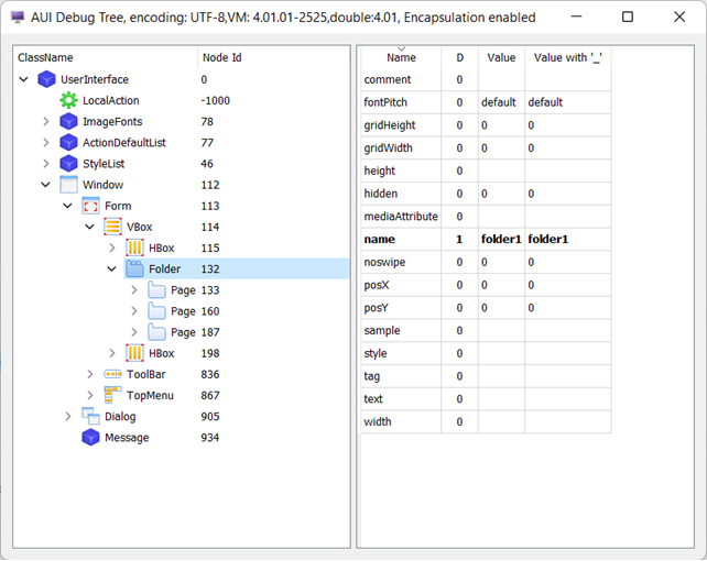 The AUI Debug Tree window opens.Figure: AUI Debug tree