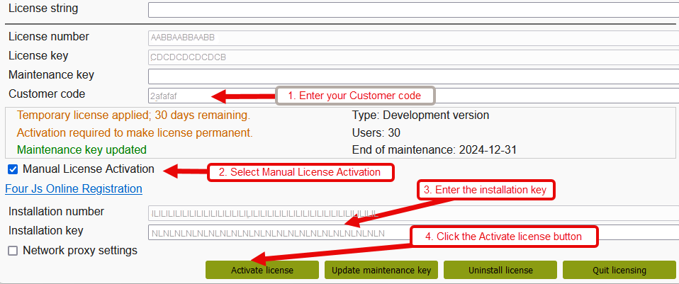 License your products page on the Four Js web site and follow the procedure described in Register your license.