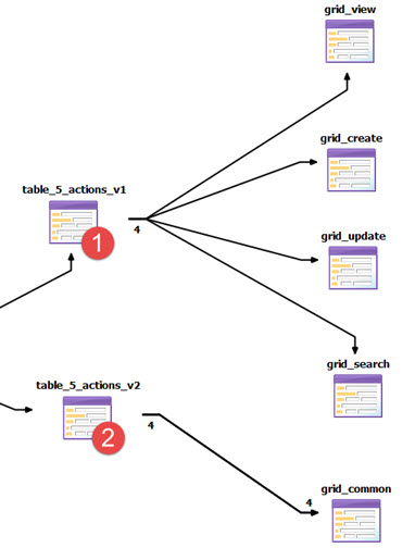 - The table _5_actions_v2 table form calls just one form, but models four