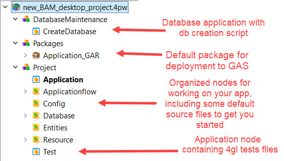 .4gl files.For BAM structured projects, this node can also have the implemented program file (.4prg) from a Business Application diagram. |