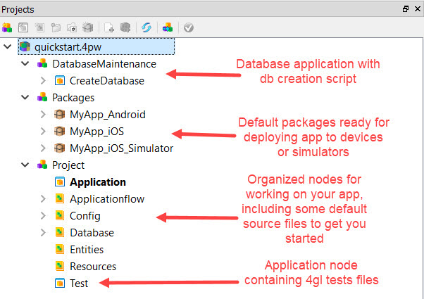| Database | The Database node contains no files when the structured project is first created. It is intended for database and database meta-schema files, such as those ending with a .4db or .4dbx extension. |