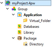 At the top of the project tree is the main project (.4pw file). Table 1 shows the elements that may appear in the project.