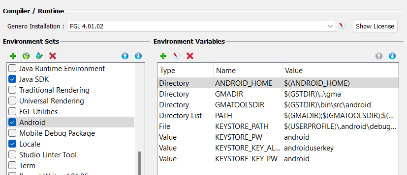Genero Mobile for Android requires Java SE Development Kit. To identify version requirements,