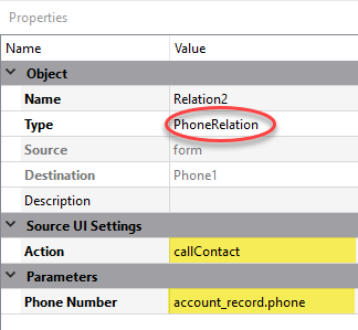 Actionproperty to callContact. Set thePhone Numberproperty to the phone column (account_record.phone).